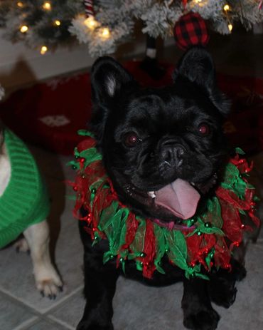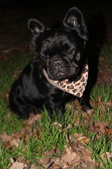 Black brindle fluffy female, we have named her Venus and she has a huge white patch on her chest!